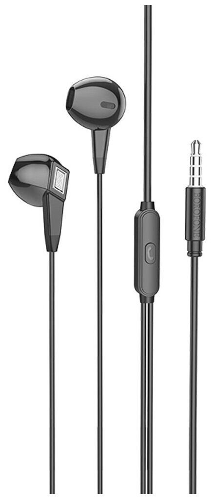 In-ear headphones Borofone BM68, Kelly, plastic, microphone, answer button, cable Jack 3.5mm, 1.2m, color: black