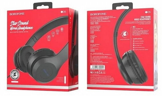 Headphones BO5 Star sound, on-ear, microphone, Jack 3.5 mm, cable 1.2 m, black