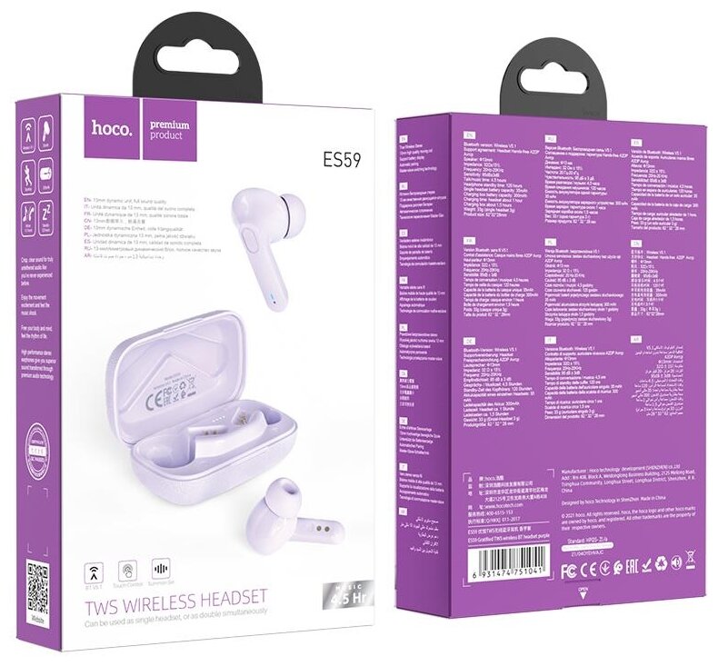 Description: Design: in-ear, device type: wireless headphones, design features: microphone, type of acoustic design: closed