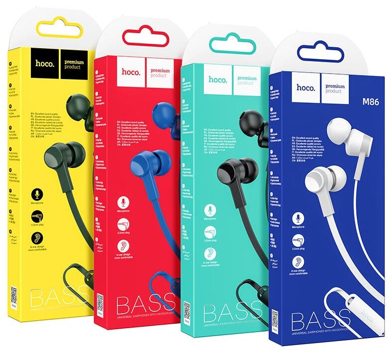 Headphones HOCO M86 Oceanic, Jack 3.5mm, 1.2 m, black, controller with microphone
