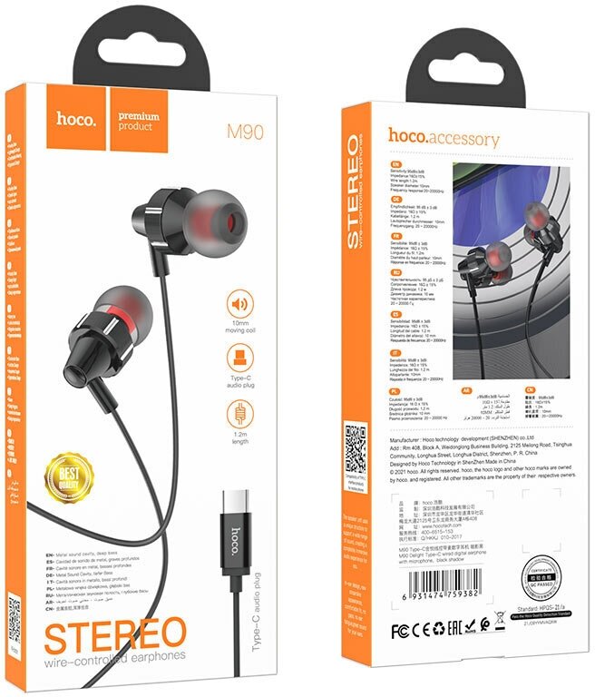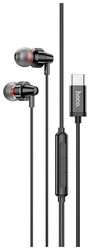 Headphones M90, Type-C, Delight wire-controlled earphones with microphone, HOCO, vacuum, black