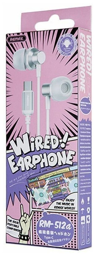 Headphones with microphone Remax RM-512a Type-C silver