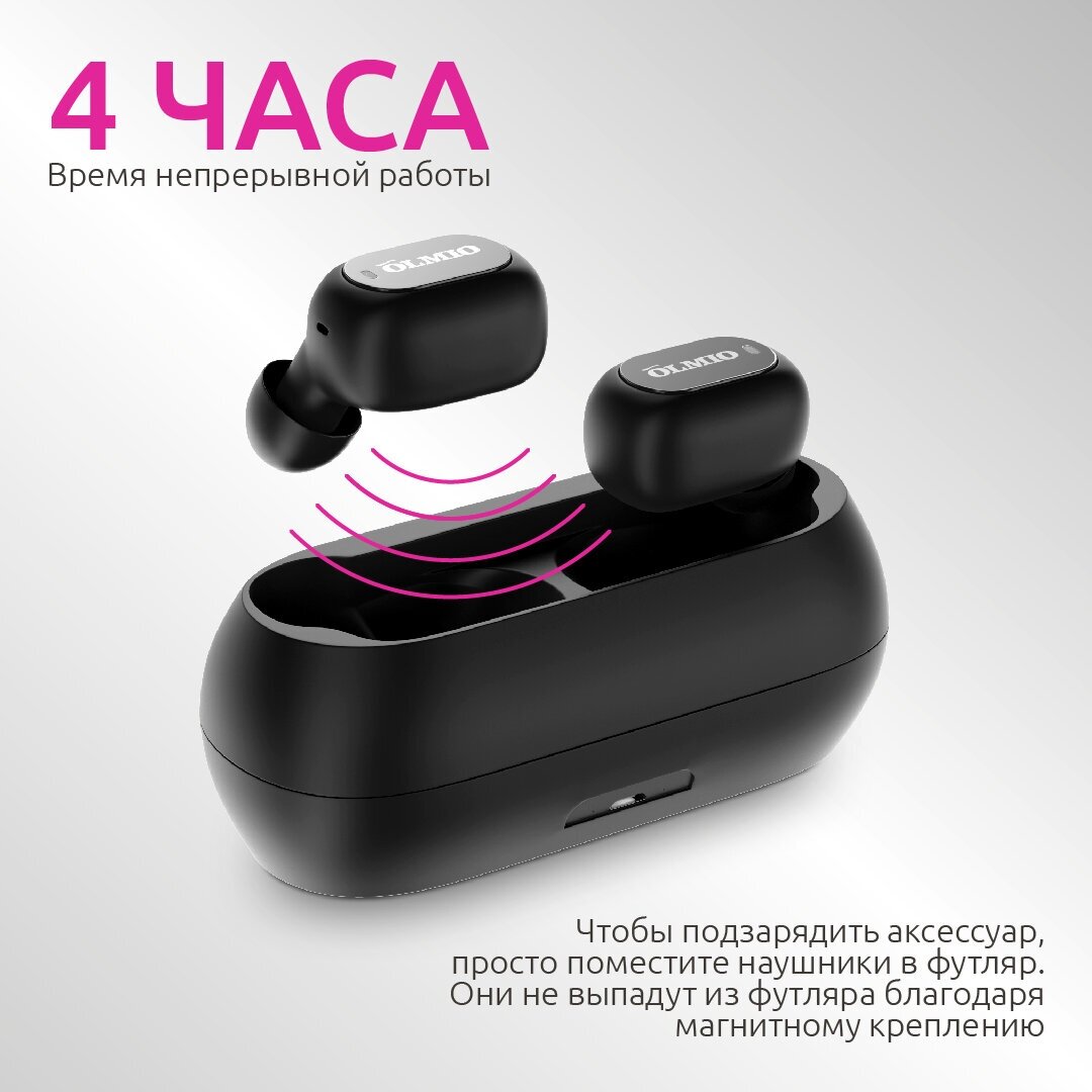 Design: in-ear, device type: wireless TWS headphones, design features: microphone, case charging type: micro USB, functions: multipoint, volume control, operating time: 4 h