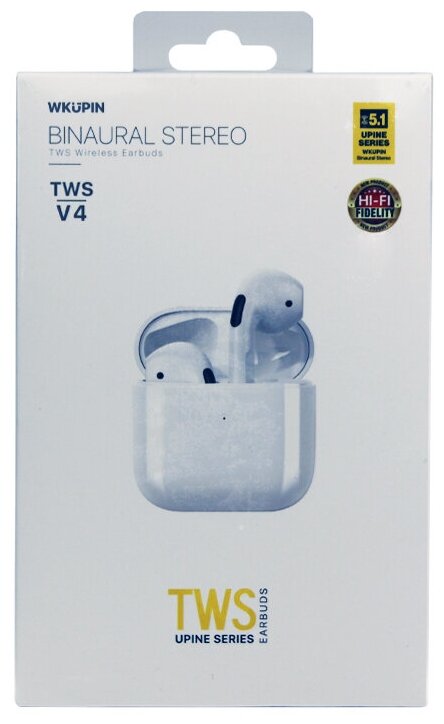 TWS Bluetooth headset WK V4 BT 5.1, in-ear white