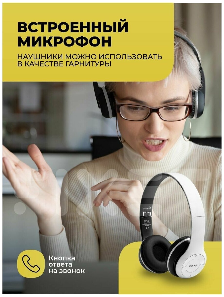 Design: on-ear, device type: wireless headphones, design features: microphone, functions: FM radio