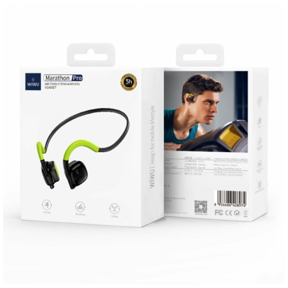 Headphones wireless, sports WiWU Marathon Pro with air conduction - Green