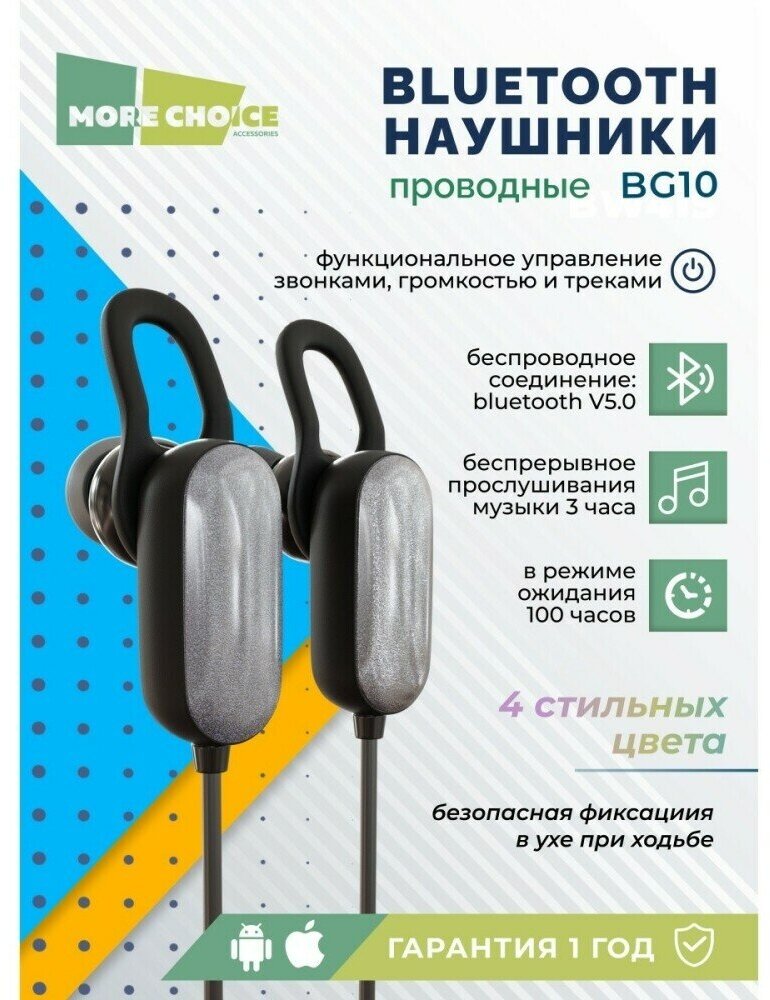 Vacuum Bluetooth Neckband More Choice BG10 Silver