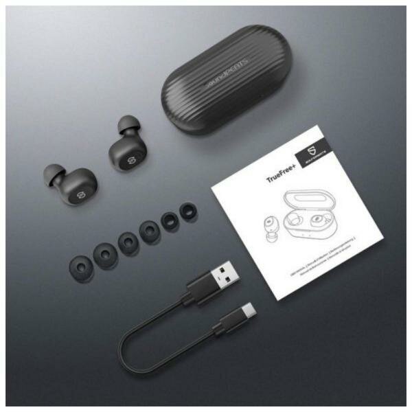 Headphones, carrying case, 8 interchangeable ear tips, usb charging cable, user manual