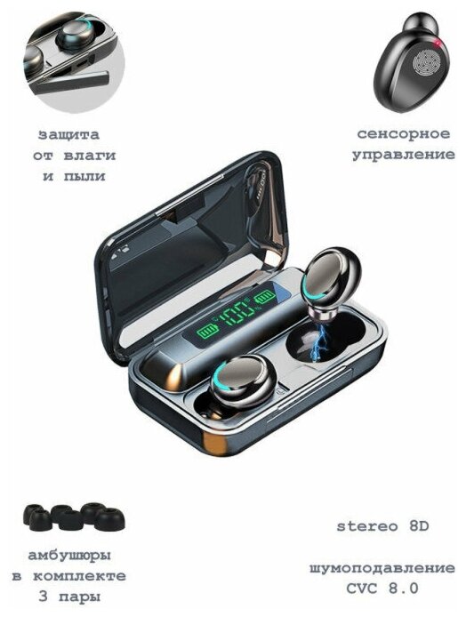Design: in-ear, device type: TWS wireless headphones, ANC active noise reduction system, design features: moisture protection, microphone, type of acoustic design: closed, functions: volume control