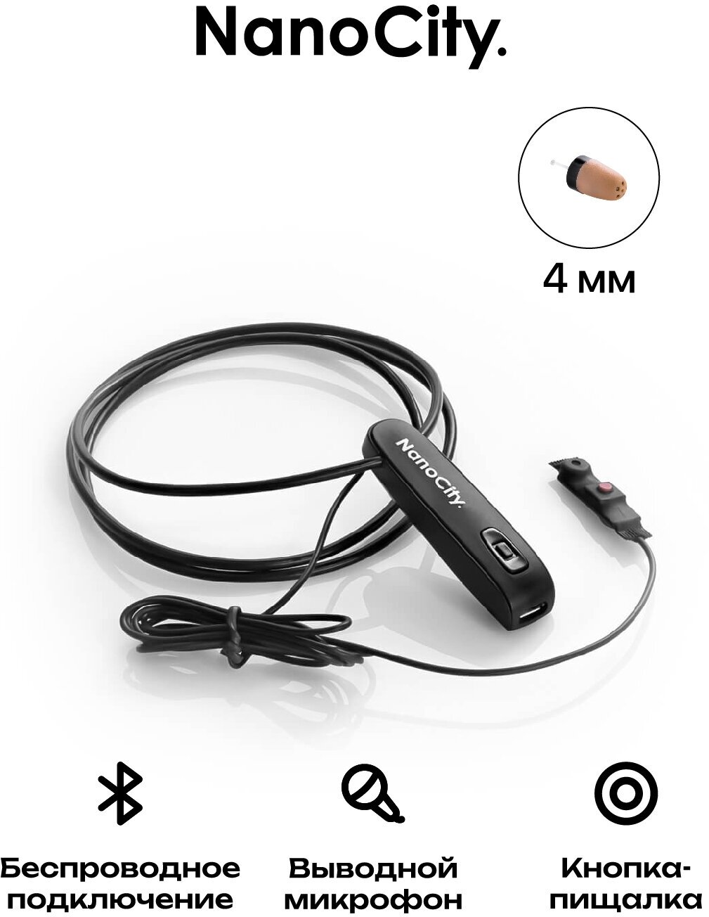 Headset - Capsule Bluetooth output microphone + buzzer button, Capsule K5 - 4 mm, 2 batteries for the capsule, Charger, Instruction in Russian, Box