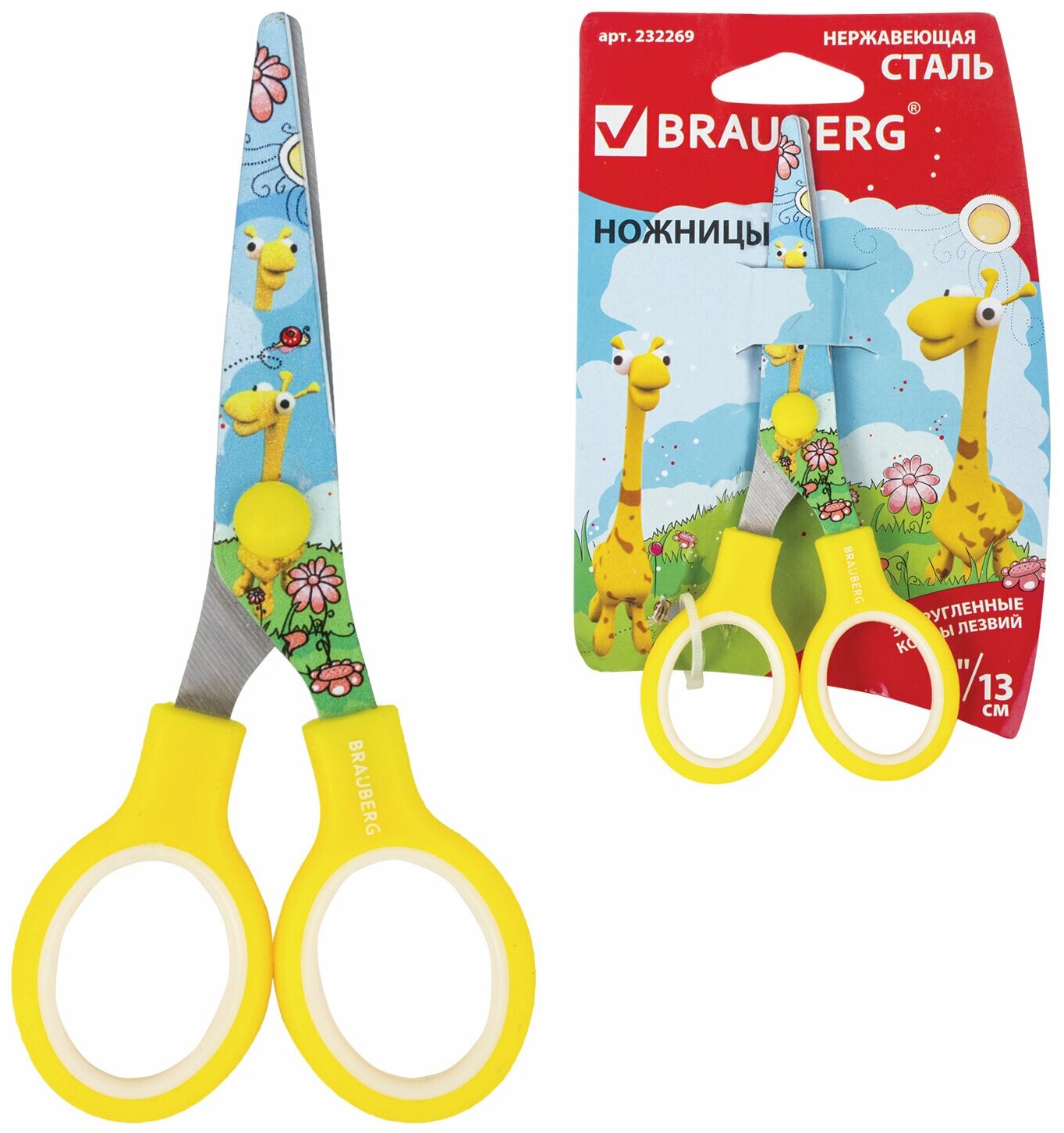 BRAUBERG brauberg kid series, 130 mm, with color print giraffes, yellow, 232269, 12 pcs.