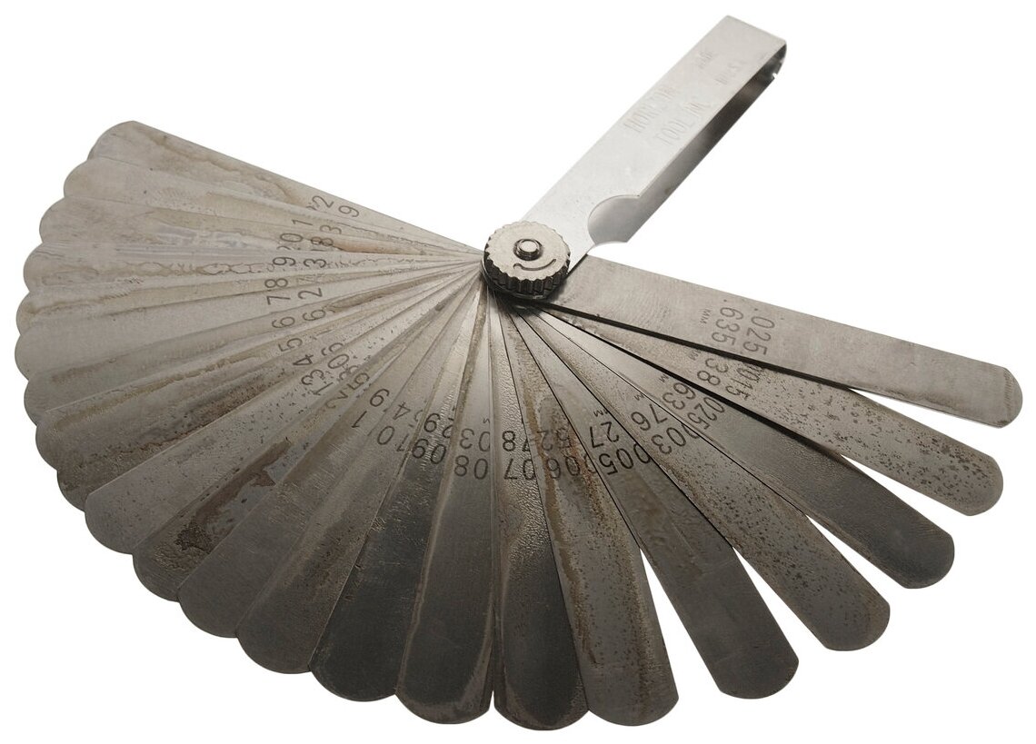 A set of straight feelers for gap measurement 0.04-0.63mm 0.0015-0.025 26 blades. JTC-4289