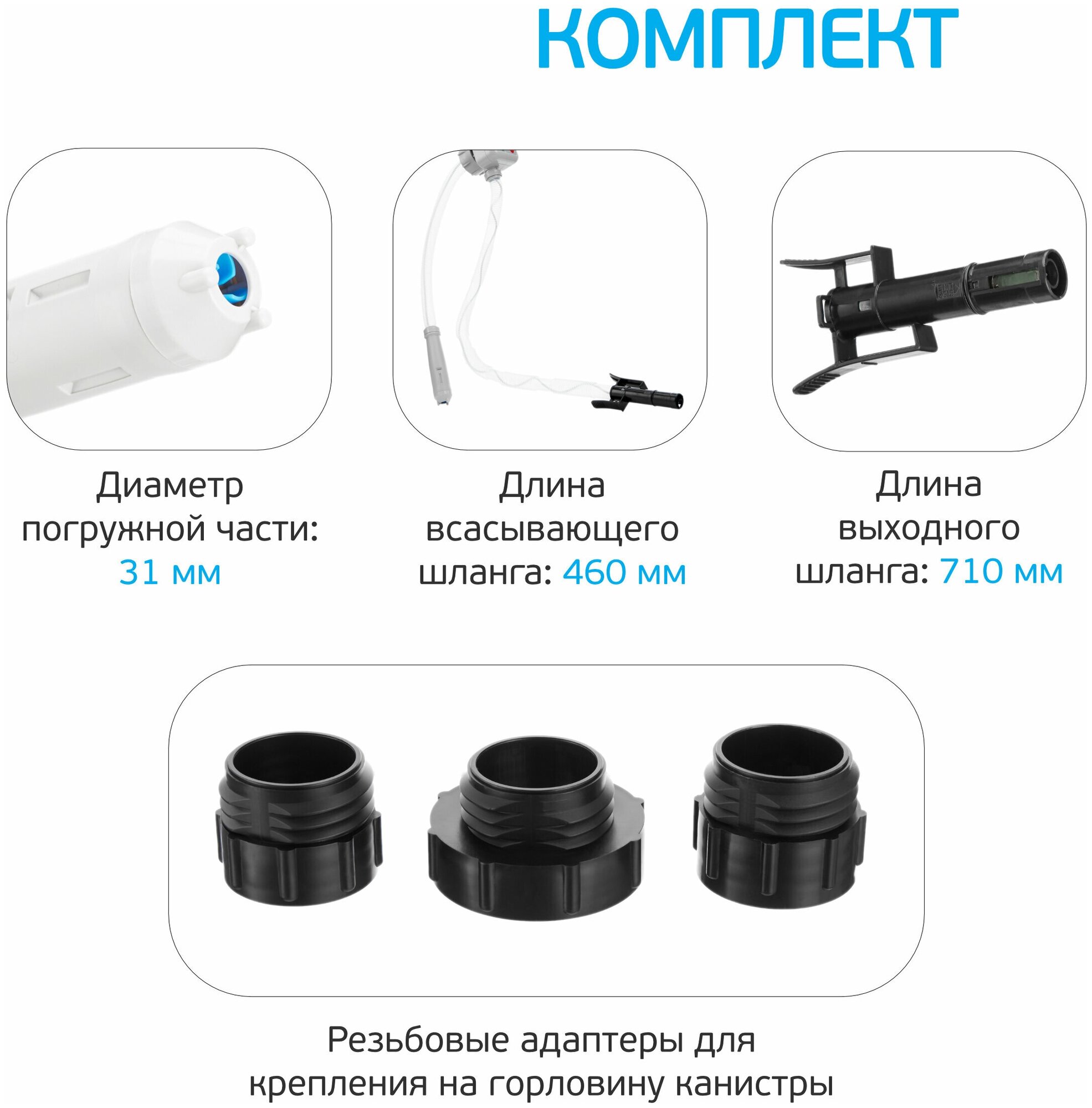 Not suitable for motor oils; capacity: up to 9 l/min, power supply: 3V DC 2 or 4 AA batteries are not included; volume of pumped liquid: 700 l and 1500 l from 2 or 4 batteries; suction length