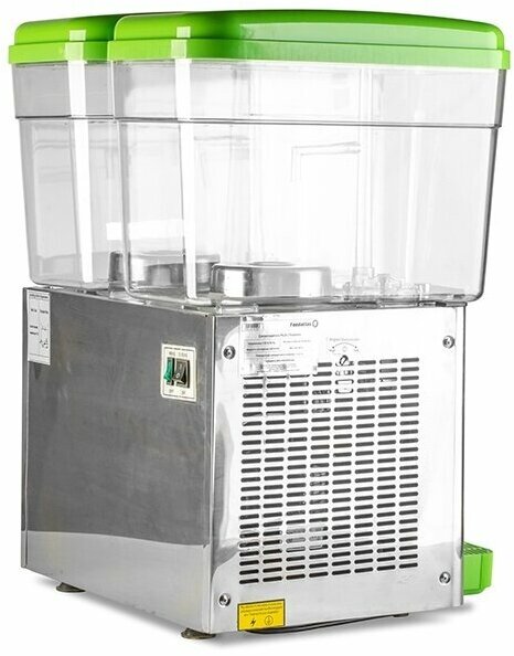 The temperature of the chilled drink in the juice cooler is 7-12°C; the heat exchanger uses R134A refrigerant; mixing option - submersible pump; current strength 2-7 A