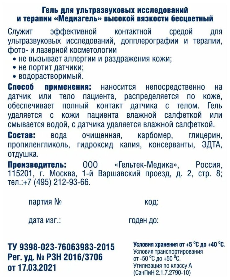 Type of consumable: ultrasound gel, medical field: endocrinology, cardiology, neurology