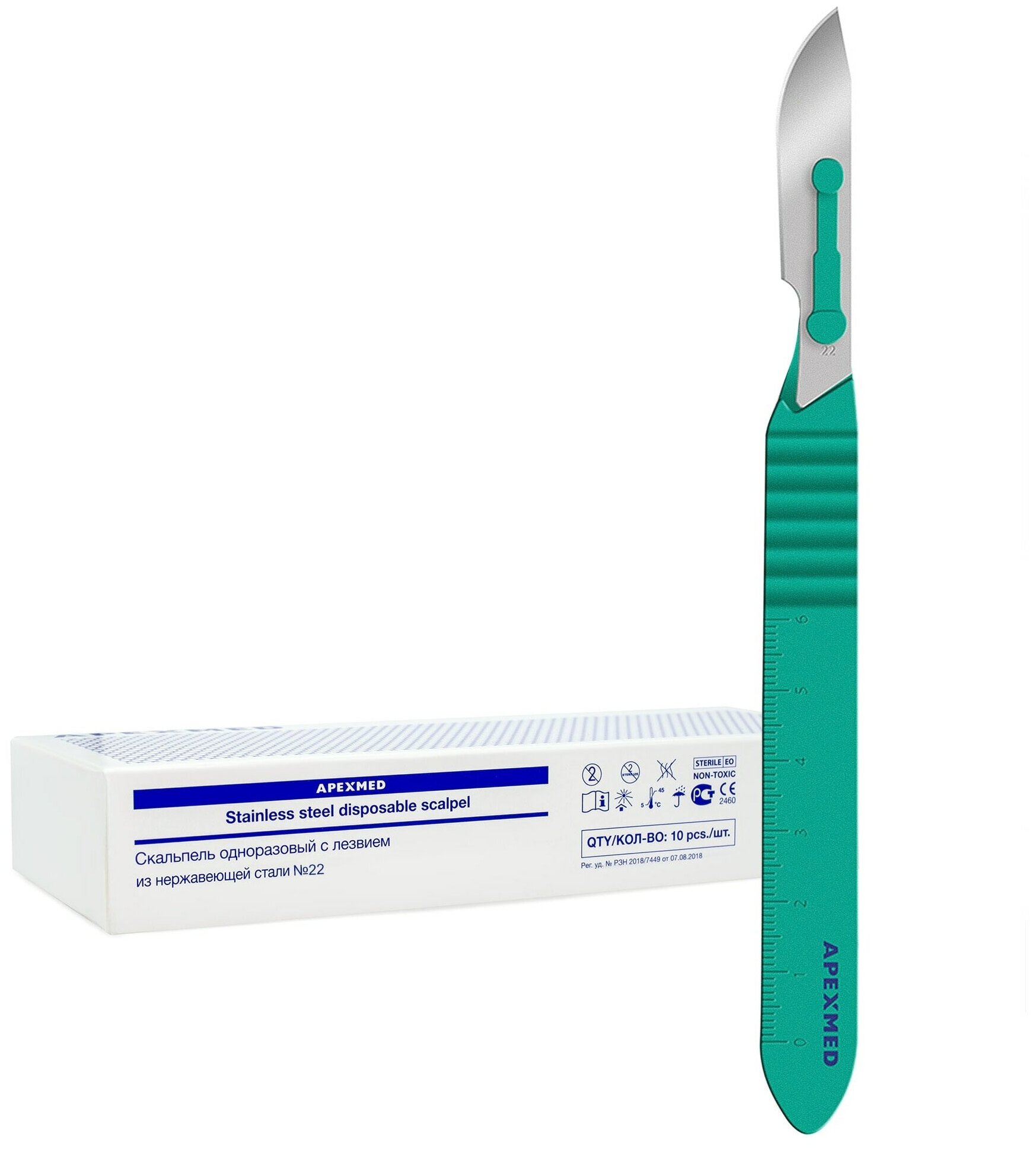 Scalpel with stainless steel blade №22, 10 pieces, Apexmed