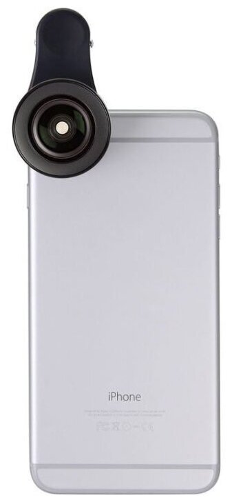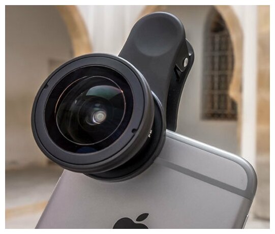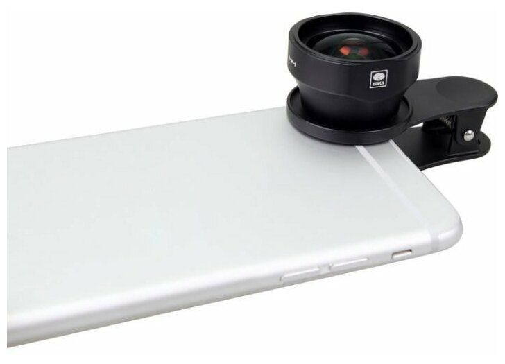 Type: lens, lens type: fisheye, lens type: single, phone mount type: clothespin, body material: metal, lens material: glass