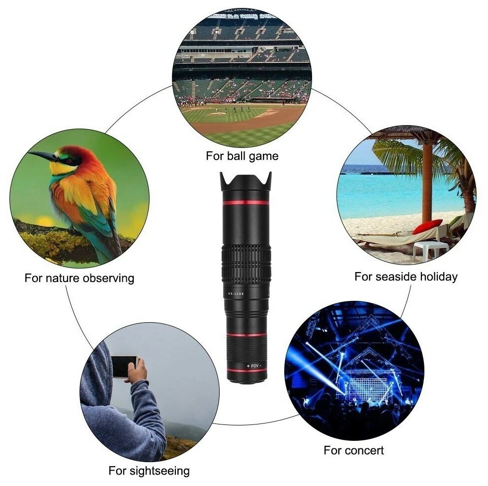 Portable Monocular Telescope for Smartphones 22X Telephoto Lens with Mini Tripod and Hard Case, Black