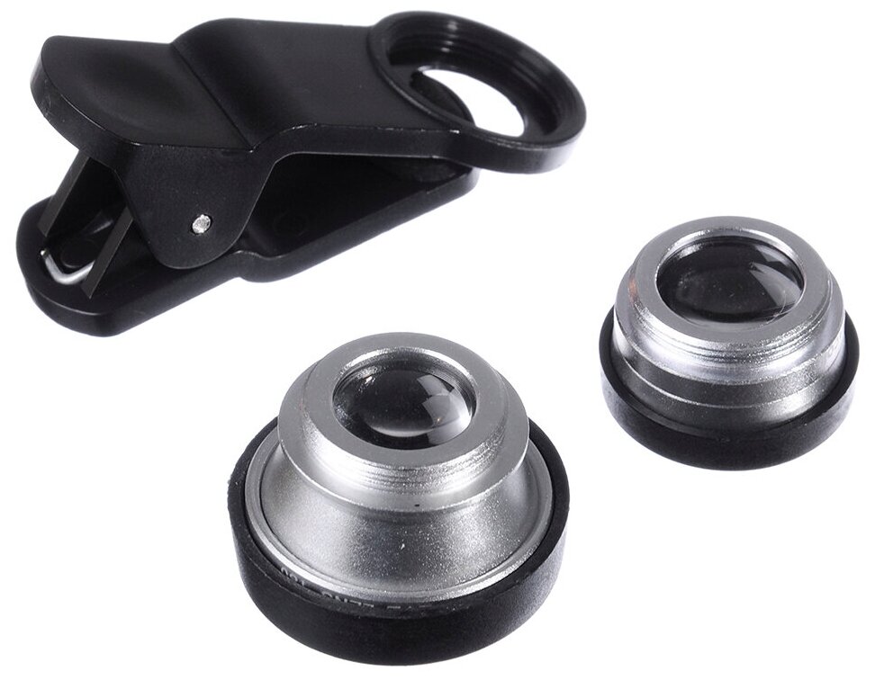 Type: lens, lens type: fisheye, wide-angle lens, macro lens, lens type: single, lens set, phone mount type: clothespin