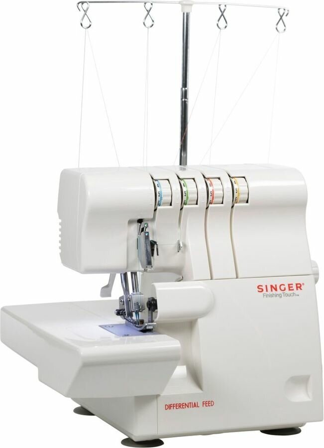 Type: overlock, 3-thread stitch, 4-thread stitch, rolled hem, differential feed, knife off