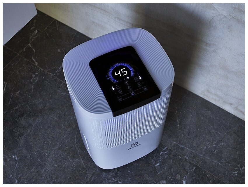 Installation: floor, tabletop, power consumption: 0.25 kW, serviced area: 15 m², capacity: 12 l/day, maximum air exchange: 120 m³/h, number of operating modes: 4, additional functions: mode