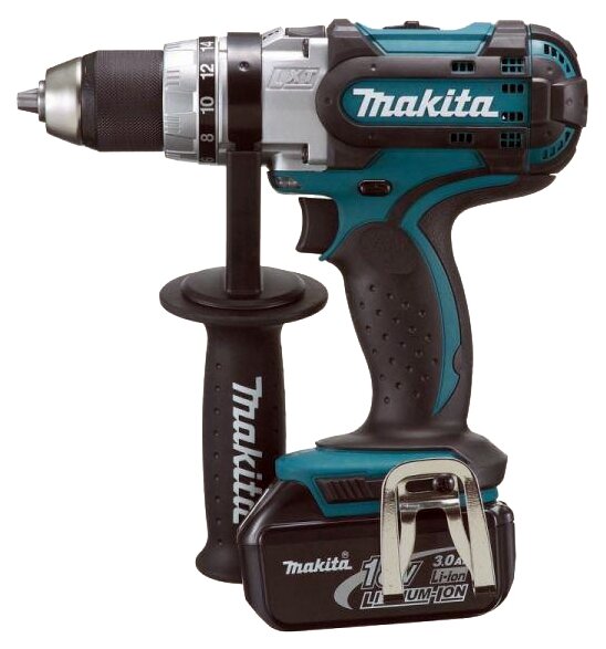 Power supply: battery, battery voltage: 18 V, number of batteries included: 2, battery capacity: 3 Ah, battery system: Makita 18V LXT, chuck type: keyless, max. drilling diameter metal: 13