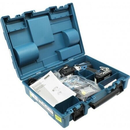 Auxiliary handle, spotlight, spindle lock, battery charge indicator, case included, soft start