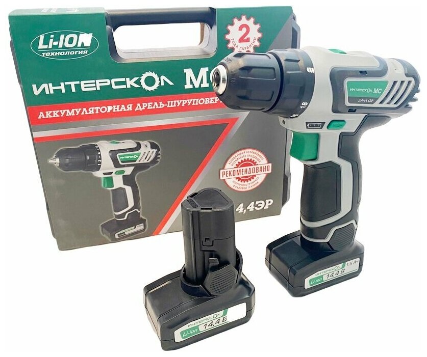 Drill driver; Safety instructions and operation manual; Warranty card; List of service centers; Rechargeable battery 2 pcs; Keyless chuck; Charger; Case.