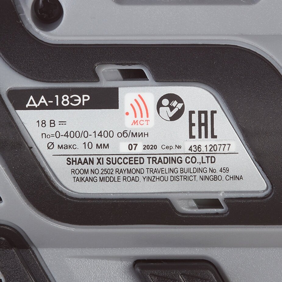 Detailed equipment: Drill driver DA-18 ER, 2 batteries, quick-release chuck mounted on a screwdriver, charger, screwdriver-nozzle 50mm PH2