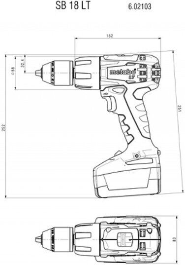 Power supply: battery, battery voltage: 18 V, maximum torque: 60 Nm, number of batteries included: 2, impact, battery capacity: 2 Ah, battery system: Metabo 18 V, cartridge type: