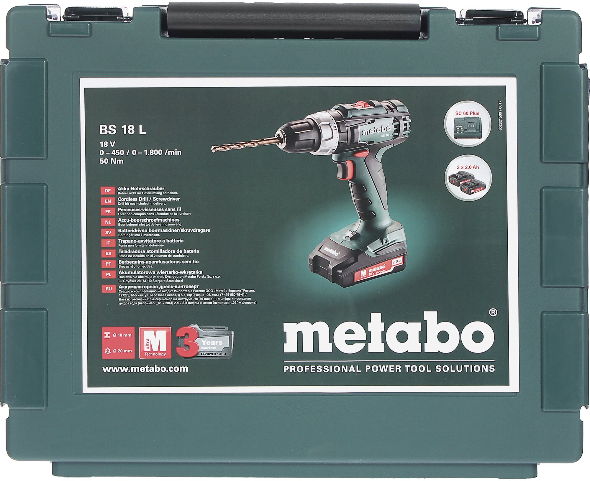 Power supply: battery, battery voltage: 18 V, maximum torque: 50 Nm, number of batteries included: 2, battery capacity: 2 Ah, battery system: Metabo 18 V, chuck type: keyless