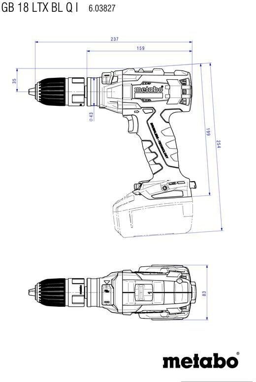 Metabo Quick system: quick change of holder and tool attachment for any work; special mode for threading; removable battery