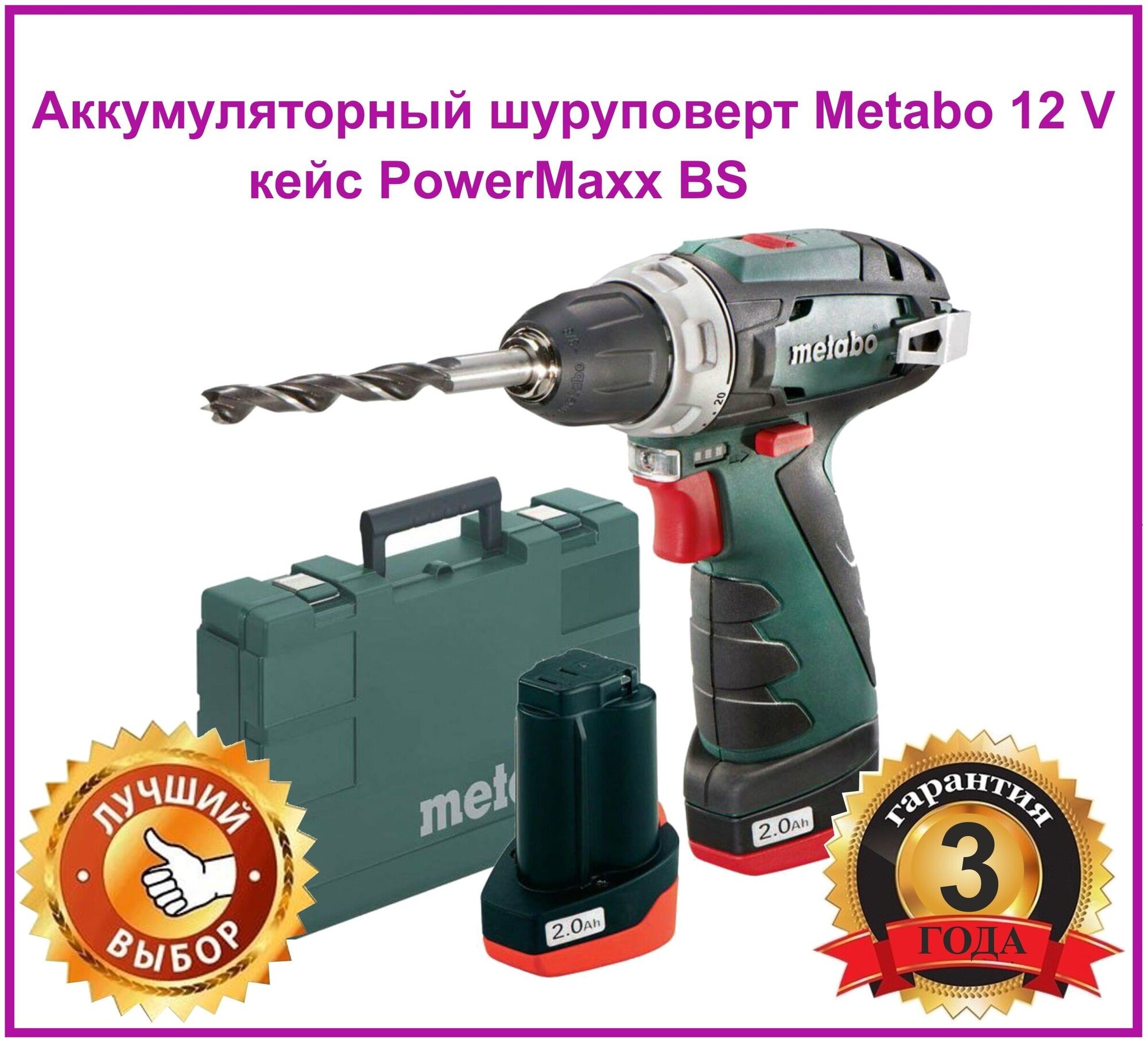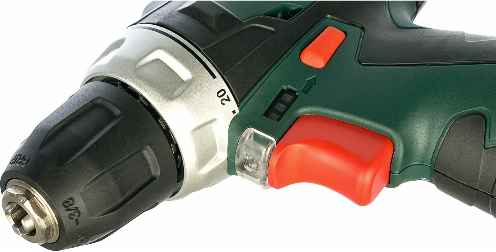 Drill driver, plug-in battery, charger, hook for carrying on a belt, keyless drill chuck, bag