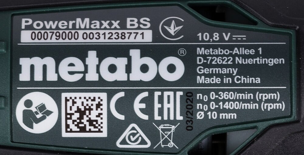 Power supply: battery, battery voltage: 12 V, maximum torque: 34 Nm, number of batteries included: 2, battery capacity: 2 Ah, battery system: Metabo 10.8V / 12V plug-in battery, cartridge type