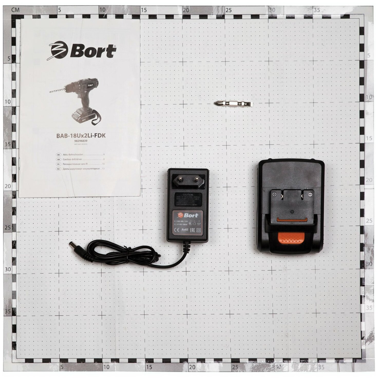 Cordless drill, 18 V, Li-Ion, 1350 rpm, 2 batteries, BORT BAB-18Ux2Li-FDK