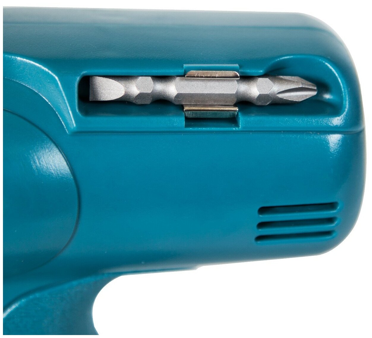Blocking of the power button, a socket in the case for fixing bits