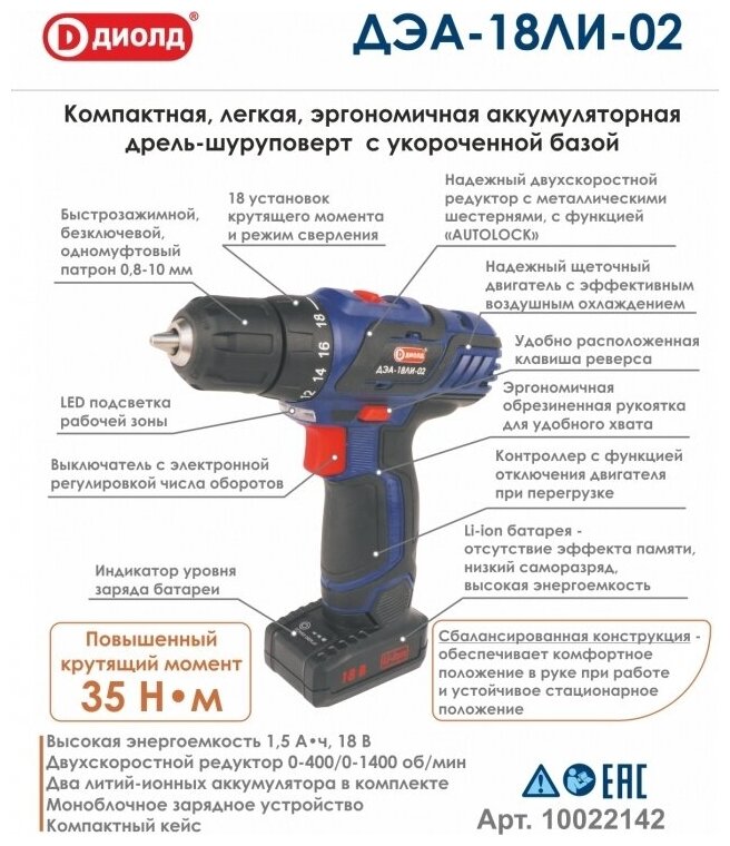 Battery charging time: 1 h; removable battery; charger type: impulse