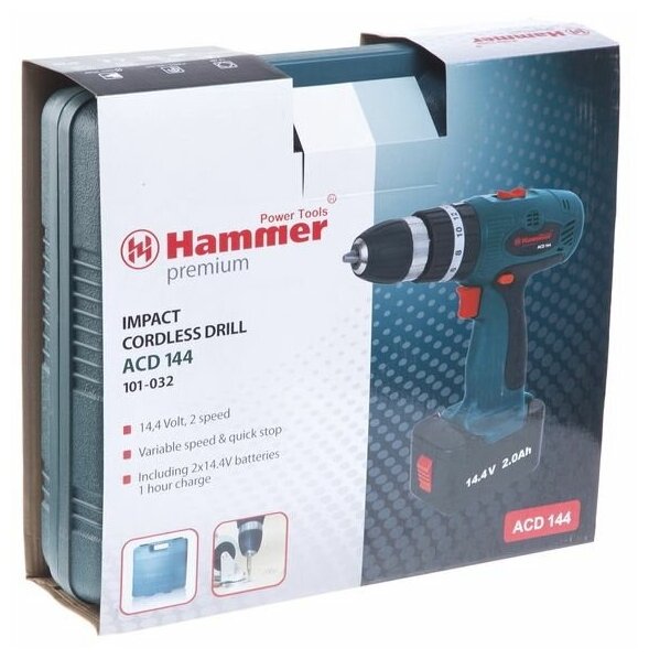 Power supply: battery, battery voltage: 14.4 V, maximum torque: 36 Nm, number of batteries included: 2, impact, battery capacity: 2 Ah, chuck type: keyless, max. diameter