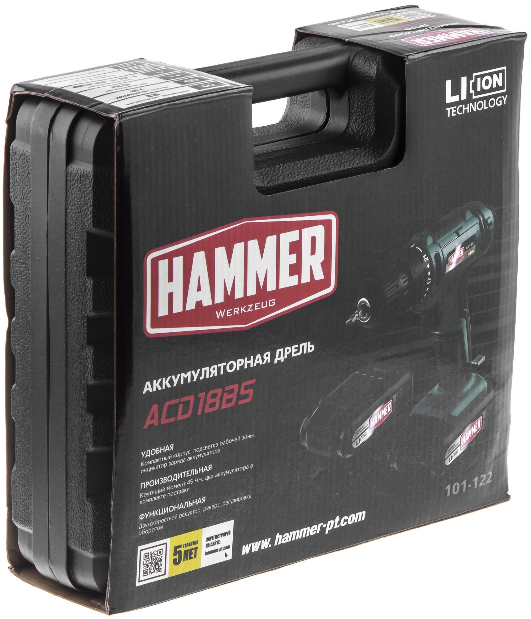 Power supply: battery, battery voltage: 18 V, maximum torque: 45 Nm, number of batteries included: 2, battery capacity: 2 Ah, chuck type: keyless, max. drilling diameter metal