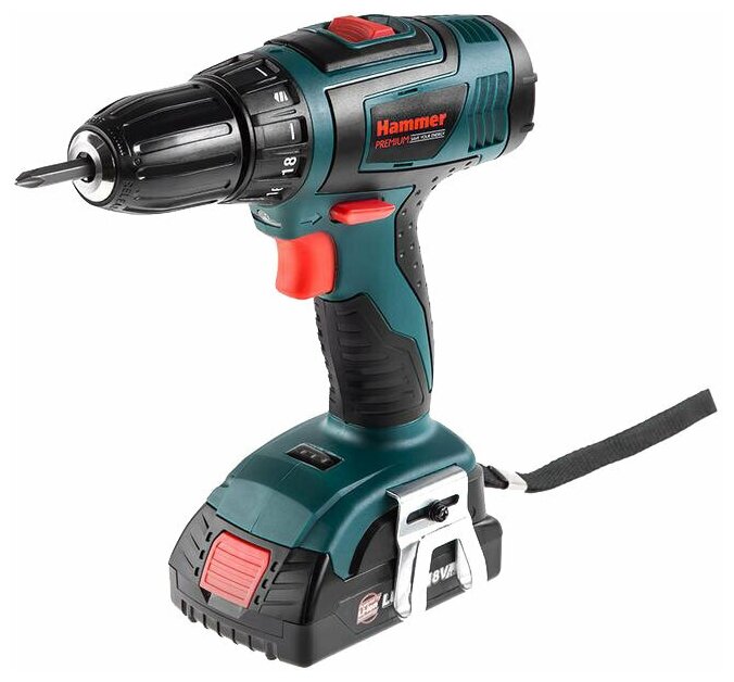 Power supply: battery, battery voltage: 18 V, maximum torque: 50 Nm, number of batteries included: 2, battery capacity: 2 Ah, chuck type: keyless, max. drilling diameter metal