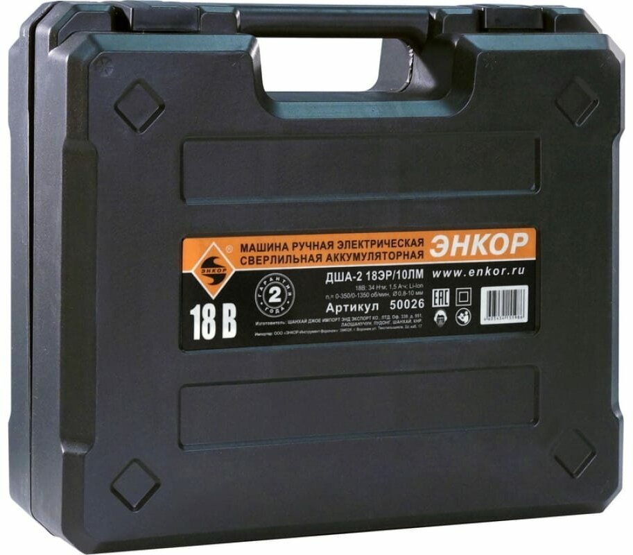 Power supply: battery, battery voltage: 18 V, maximum torque: 34 Nm, battery capacity: 2 Ah, chuck type: keyless, max. drilling diameter metal: 10 mm, max. drilling diameter wood: 20