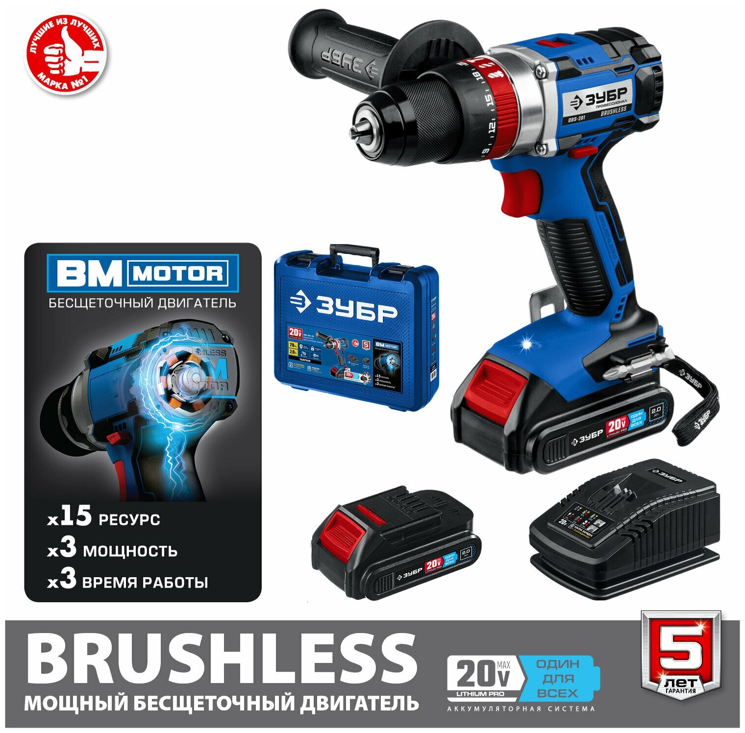 ZUBR 20 V, brushless, without battery, in a box, impact drill driver DBS-201 Professional