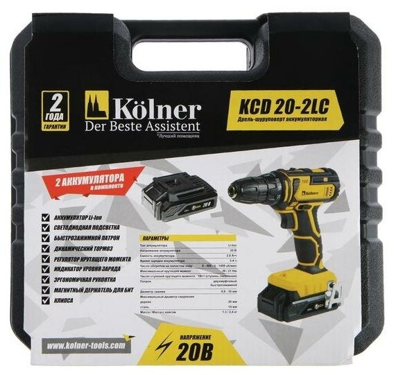 Cordless drill/driver -1 pc, instruction manual -1 pc, battery -2 pcs, charger -1 pc, clip -1 pc, drill -6 pcs, bit -6 pcs