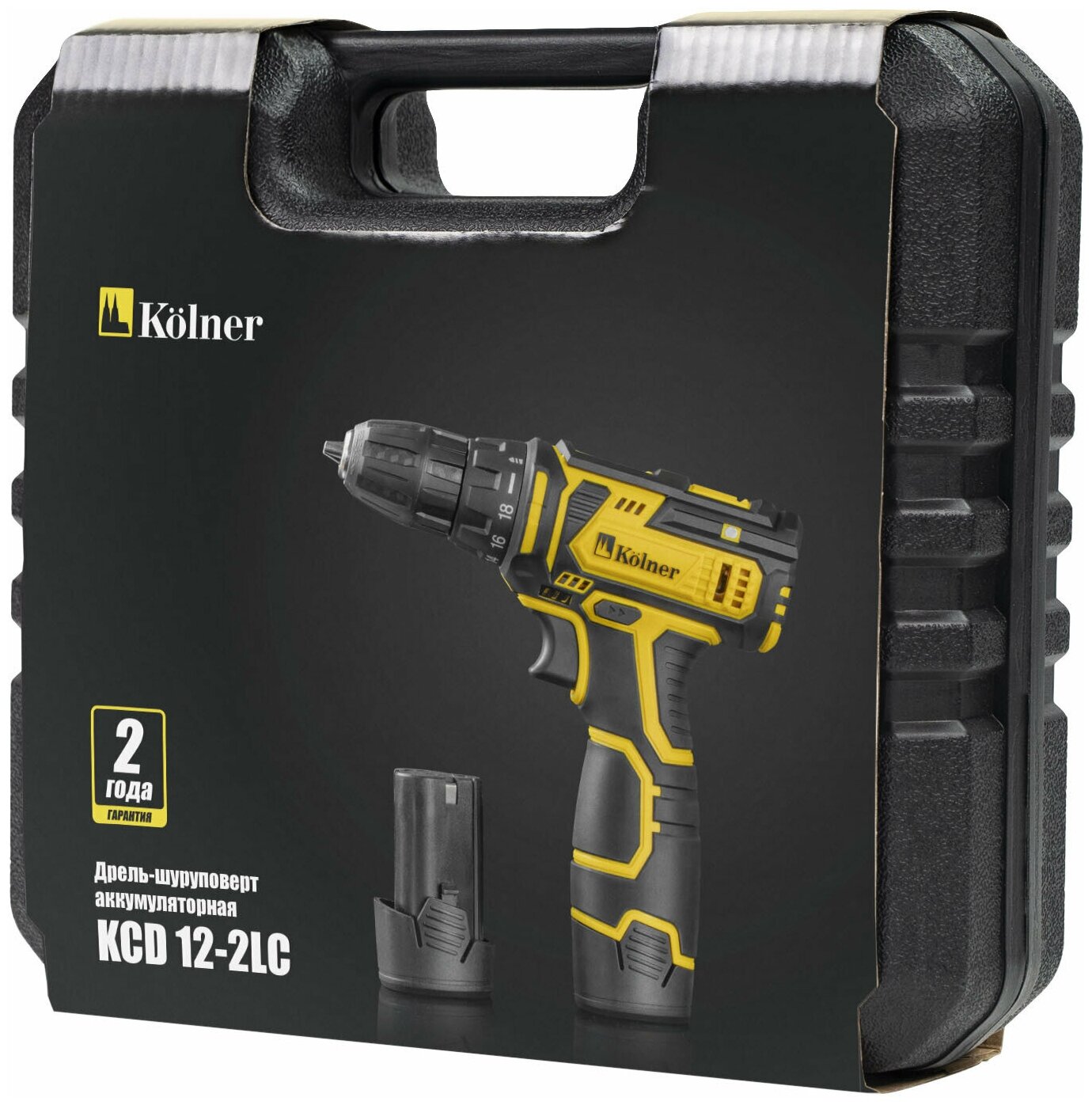 Battery 2 pcs, charger, drill 6 pcs, bit 6 pcs, bit adapter, plastic case