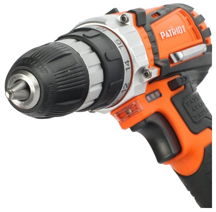 Locking the power button, a socket in the housing for attaching bits, a spotlight