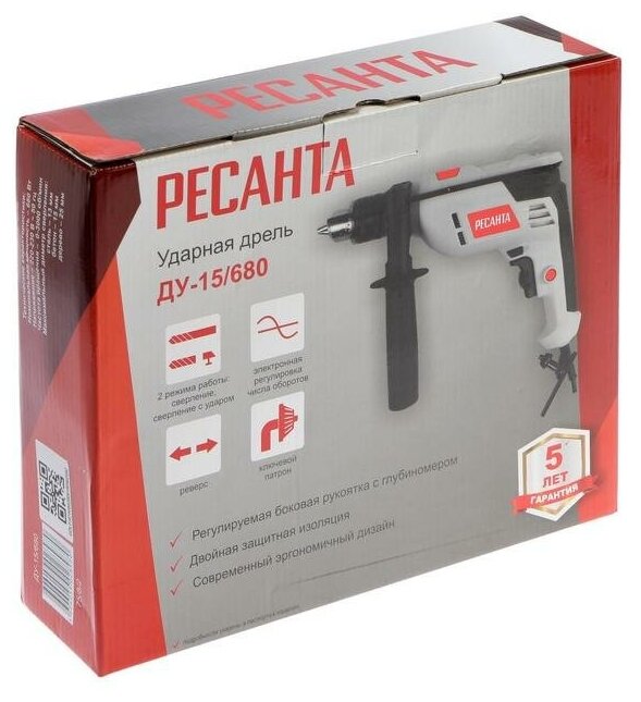 Shock Resanta DU-15/680, 680 W, ZVP 1.5-13 mm, 3000 rpm, reverse + DRILLS 5193866