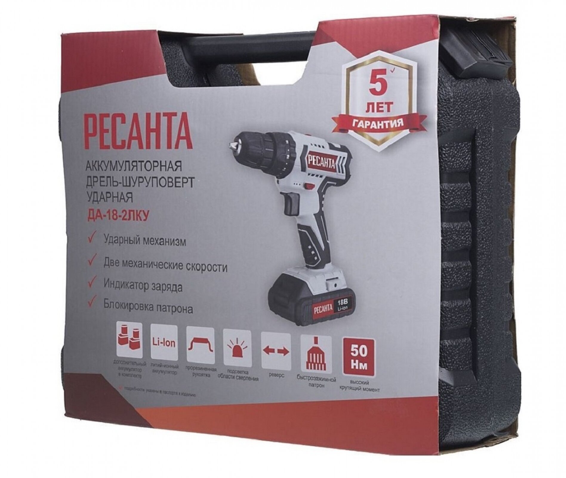 Power supply: battery, battery voltage: 18 V, maximum torque: 50 Nm, number of batteries included: 2, impact, battery capacity: 2 Ah, chuck type: keyless, max. diameter c