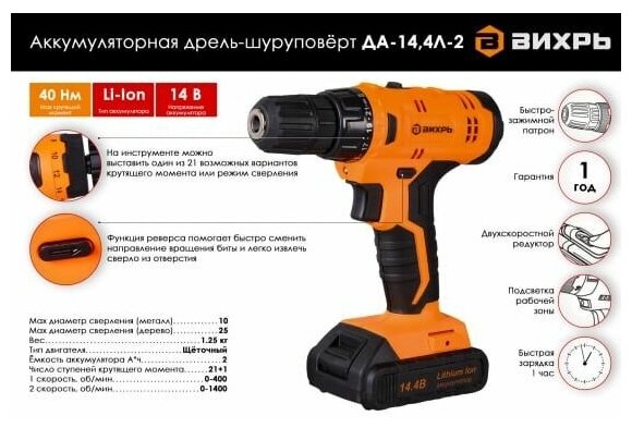 Power supply: battery, battery voltage: 9.6 V, maximum torque: 21 Nm, number of batteries included: 2, battery capacity: 2 Ah, chuck type: keyless, max. drilling diameter
