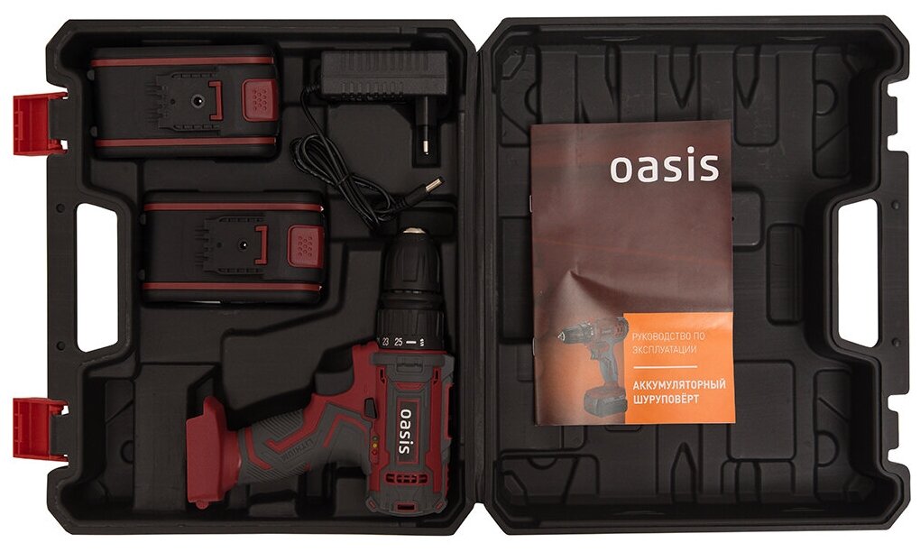 Cordless screwdriver - 1 pc. Additional battery - 1 pc. Charger - 1 pc. Case for storing and transporting tools - 1 pc. Instruction manual - 1 pc.