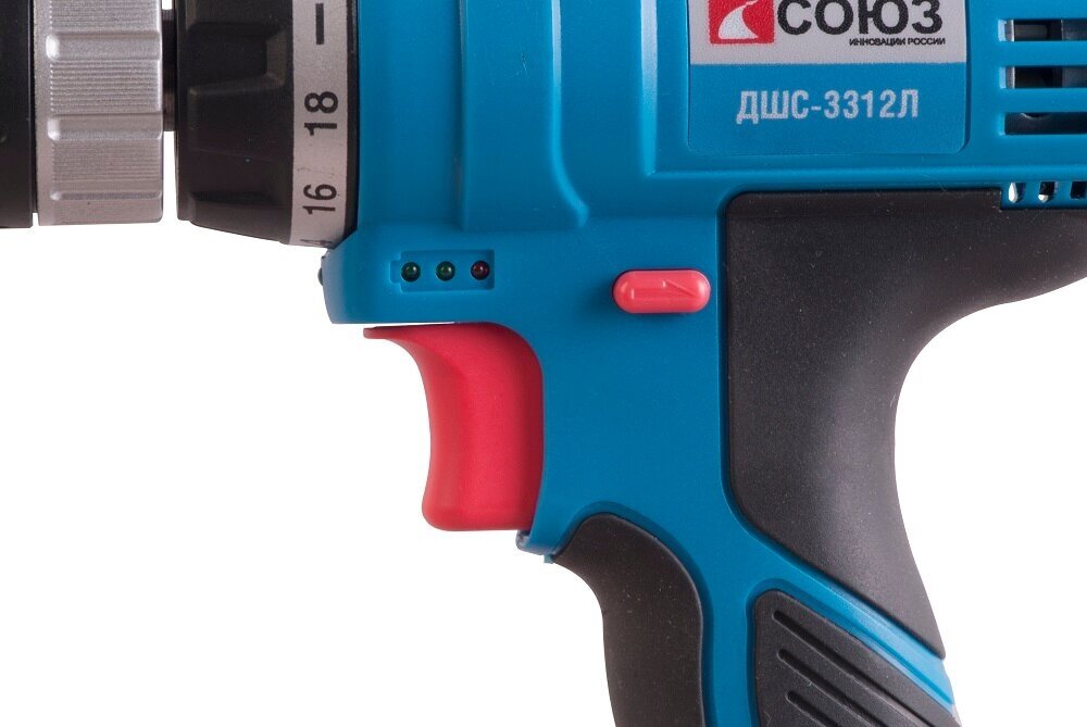 Locking the power button, a socket in the housing for attaching bits, a spotlight